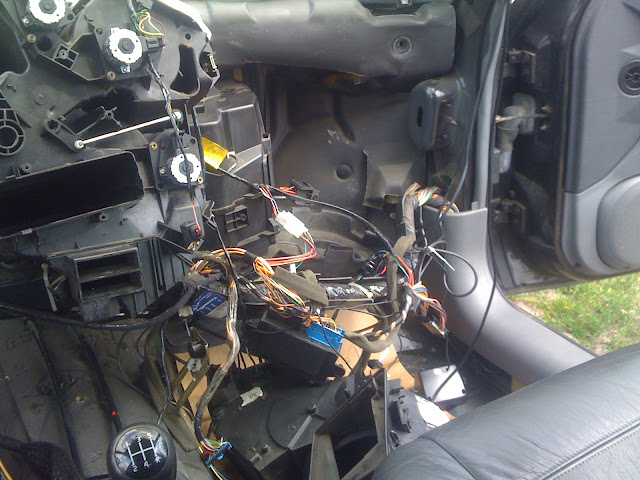 Kolejnym etapem jest zdjęcie zegarów, deski rozdzielczej i poprzeczki połączonej z rurą pod kokpitem. Gdy kolumnę już miałem poza autem odkręciłem dwururkę, wcześniej wydmuchałem przez wężyk płyn z nagrzewnicy.